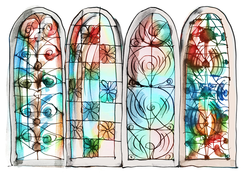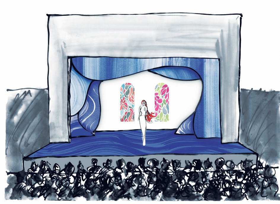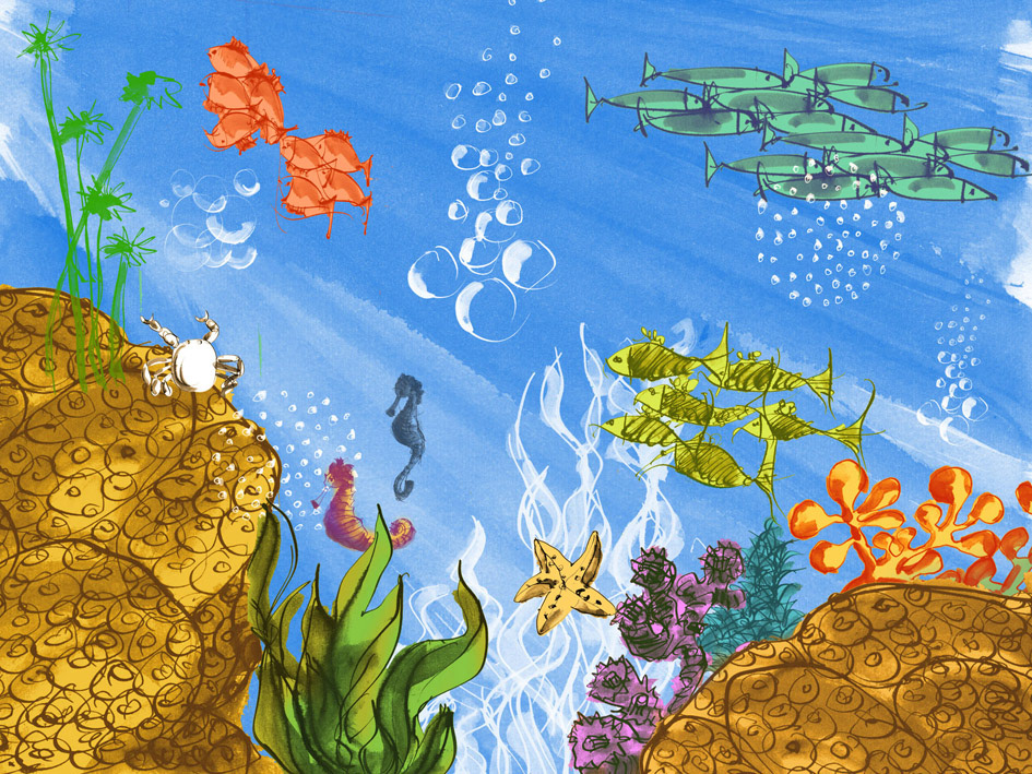Ilustrações de joão Galhardo para cenário da peça infantil Pequena Sereia. Projeto do escritório de Arte Rio.