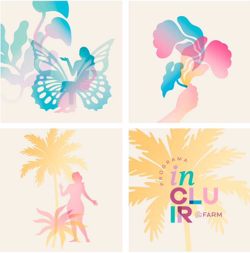 Criação de Logo, KV e Ilustrações para Programa Incluir e ilustrações para Cartilha de Diversidade da Farm.